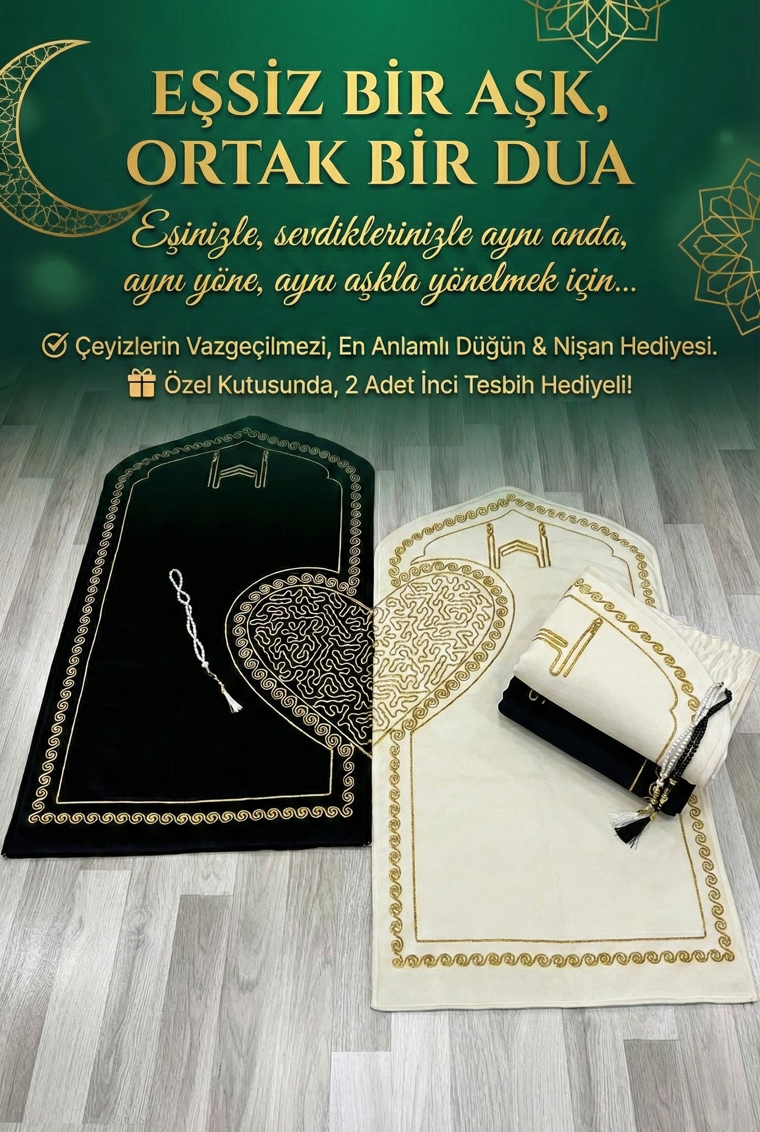 Yan yana okunan dualar, birleşen kalpler... Eşinizle manevi huzuru paylaşmanız için, 2 adet hediye tesbihiyle birlikte özel olarak hazırlandı.